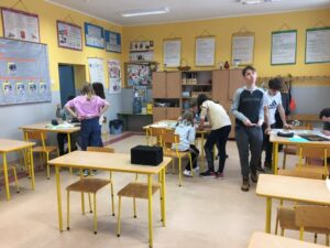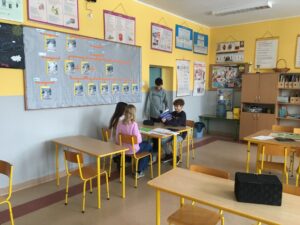 Stała się rzecz niesłychana! Jeden z Elfów zgubił przepis na świąteczne pierniczki. Jak to? Święta bez korzennych słodkości? Okazało się jednak, że stary Elf nie chciał, by czarodziejski przepis dostał się w niepowołane ręce, więc ukrył jego kopię w tajemniczej czarnej skrzynce zamkniętej na zieloną kłódkę z kodem. Próbę odnalezienia przepisu podjęli uczniowie kl 6a. By zdobyć tajemniczą recepturę, szóstoklasiści musieli rozwiązać szereg zadań z różnych dziedzin. Musieli m.in. wykazać się znajomością angielskich słów związanych ze świętami, obejrzeć film prezentujący życiorys Św. Mikołaja i wykonać szereg skomplikowanych matematycznych obliczeń. Ponadto poprawić błędy ortograficzne w liście do św. Mikołaja i odszukać w atlasie na terenie jakich państw leży Laponia. Udało się! Zadania zostały rozwiązane, a przepis na pierniczki odnaleziony! Święta uratowane!