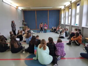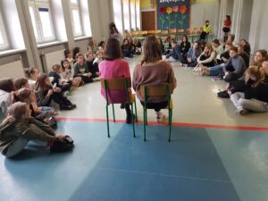 Uczennice klasy 8b poprowadziły warsztaty „Z MIESIĄCZKĄ NA TY”. Rozmawiałyśmy o ubóstwie menstruacyjnym i wykluczeniu społecznym osób menstruujących, którym brakuje pieniędzy na podstawowe środki higieniczne. Omawiałyśmy tematy które nas niepokoją i potrzebujemy o nich porozmawiać. Chcemy żeby każda dziewczyna w naszej szkole czuła się bezpiecznie podczas okresu. Menstruacja to nie tabu i musimy o niej rozmawiać.