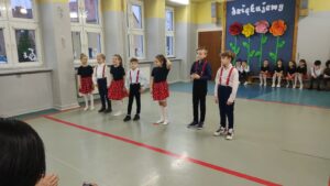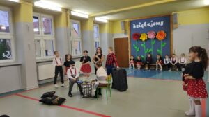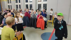 10 lutego 2023 roku uczniowie klasy II zaprosili swoje Babcie i Dziadków na uroczystość z okazji Ich święta. Goście mieli okazję podziwiać wnuczęta w specjalnie przygotowanym występie. Dzieci od samego początku były bardzo zaangażowane. W dniu występu towarzyszyła im lekka trema, jednak swoje role odegrały perfekcyjnie. Tańczyły, śpiewały, recytowały, zaprezentowały pokaz mody. Występy zostały nagrodzone gromkimi brawami, w wielu oczach naszych dostojnych gości pojawiły się łzy wzruszenia. Na koniec dzieci złożyły najserdeczniejsze życzenia wszystkim Babciom i Dziadkom. Po części artystycznej wręczyły gościom własnoręcznie wykonane upominki – igielniki i „setki szczęścia „czyli buteleczki wypełnione cukiereczkami. Spotkanie przebiegało w bardzo miłej atmosferze. Oczywiście nie zabrakło słodkiego poczęstunku, o który zadbali rodzice. Tak miłe, wspólnie spędzone chwile zostały uwiecznione na fotografiach wykonanych podczas uroczystości. Pozostaną one na długo w pamięci nie tylko naszych gości, ale również dzieci.