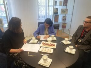 28 kwietnia 2023 roku pani dyrektor Jolanta Siekierka wraz z panią Izabelą Kulpok odwiedziły Archiwum Państwowe w Opolu. Celem tej wizyty było uroczyste podpisanie dokumentów dotyczących znalezionego w naszej szkole źródła historycznego. Po oficjalnym podpisaniu dokumentów Kierownik Archiwum pani Barbara Sypko zaprosiła nas do odwiedzenia kilku pracowni i zapoznania się z pracą tej Instytucji. Fascynująca wycieczka rozpoczęła się w dziale konserwacji dokumentów. Zapoznaliśmy się również z pracą w dziale dygitalizacji dokumentów oraz zwiedziliśmy magazyny archiwum gdzie miałyśmy możliwość obcowania z dokumentami z XIV wieku. Była to dla nas piękna Żywa Lekcja HISTORII za którą Dziękujemy.