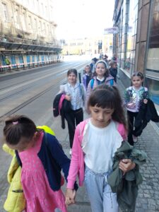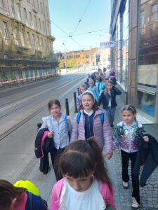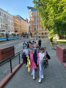 Po spektaklu dzieci udały się na wrocławski Rynek gdzie podziwiały Ratusz i przepiękne kamienice. Wielką atrakcją była także przejażdżka tramwajem.