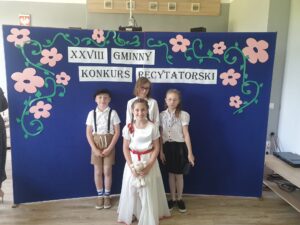XXVIII Gminny Konkurs Recytatorski klas I – IV Katarzyna Hawzner 30 maja 202330 maja 2023No Comment Weronika Jorgel – III miejsce w kategorii klas 1Oliver Wieszołek – dyplom za udział w kategorii klas 2Maja Santura – wyróżnienie w kategorii klas 3Anna Lippa – II miejsce w kategorii klas 4