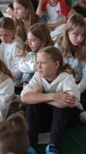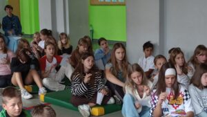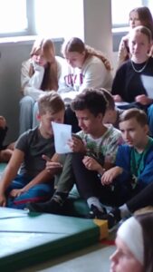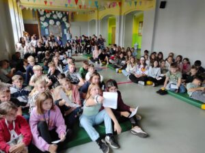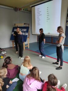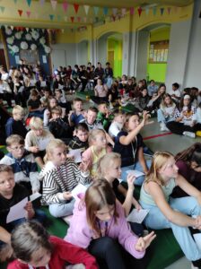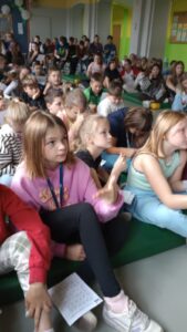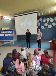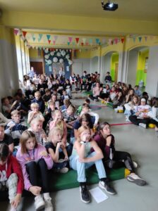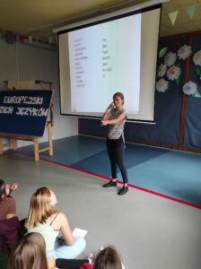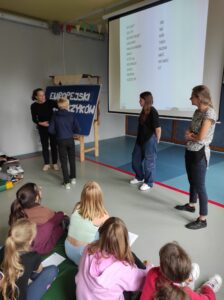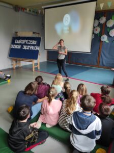 26 września 2023 obchodziliśmy wraz z Panią Ewą Gierszewską (z Polskiego Związku Głuchych) Europejski Dzień Języków. Uczyliśmy się z Panią języka migowego i odgadywaliśmy słowa w języku angielskim, niemieckim i migowym.