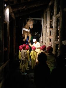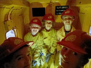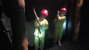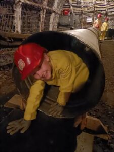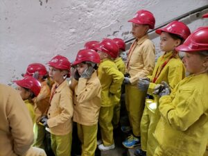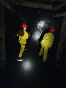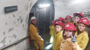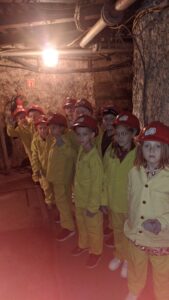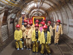 4 października klasa 1 i 2 wybrały się na wycieczkę do Sztolni Królowa Luiza w Zabrzu. Największą atrakcją wyjazdu było wcielenie się w rolę górnika i na własnej skórze odczucie trudów pracy pod ziemią! Mali podopieczni otrzymali oryginalny, sztygarski strój roboczy i ekwipunek w postaci kasku z lampą górniczą. W trakcie zajęć poznali realia pracy w kopalni, wykonując różnorodne zadania, takie jak urabianie węgla kilofem, ładowanie i transport drewnianą taczką, cięcie drewna, a także brali udział w akcji ratowniczej.