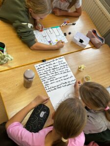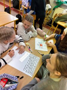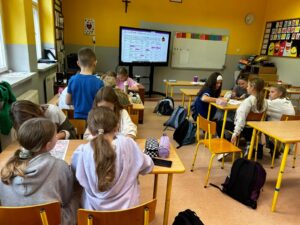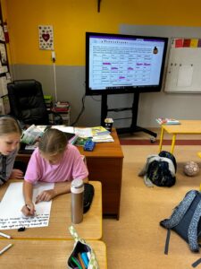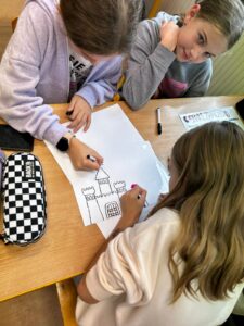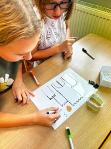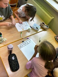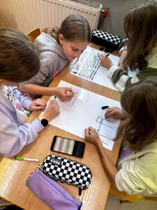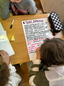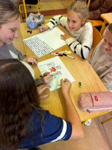 W klasie 5 kreatywność kwitnie jak jesienne liście! Dziś w halloweenowym tonie uczniowie tworzyli opowieści, w które zostały wplątane, niczym sieć pajęcza, elementy dreszczyku. Podczas zajęć twórczego pisania, wykorzystana została magiczna kostka, by wylosować elementy świata przedstawionego. Czy można sobie wyobrazić lepszy sposób na rozbudzenie wyobraźni niż rzut kostką, który dostarcza nieprzewidywalnych inspiracji?