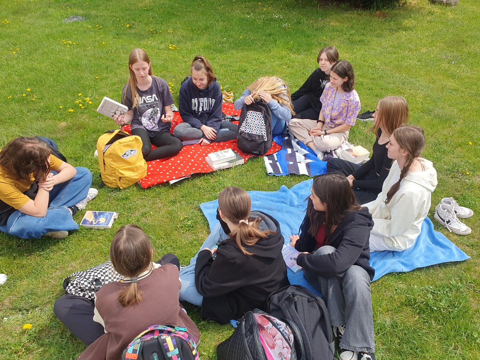 Czytaj dalejAkcja „Czytanie na polanie” w ramach tygodnia bibliotek. Uczennice prezentowały swoje ulubione książki które czytają. Polecały je innym czytelnikom.