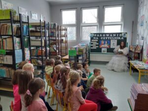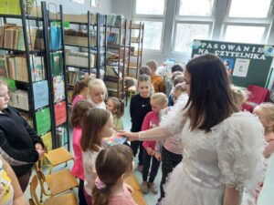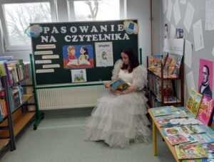 bajkę, a po złożeniu przyrzeczenia pasowała ich na czytelników.