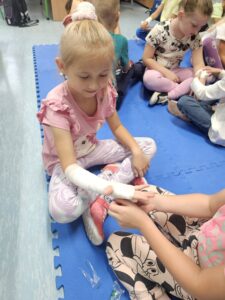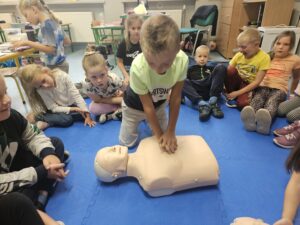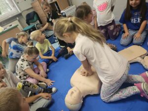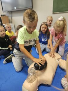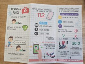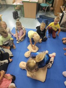 Z okazji Światowego Dnia Pierwszej Pomocy, który wypada w tym roku 14 września, klasa 1A dowiedziała się w jaki sposób udzielić pierwszej pomocy oraz jak pomóc poszkodowanym w różnej sytuacji. Uczniowie uczli się podstaw resuscytacji krążeniowo- oddechowej, a także uczyli się bandażować kończyny w przypadku wystąpienia kontuzji. Każdy na koniec zajęć dostał ulotkę z najważniejszymi wskazówkami udzielania pierwszej pomocy oraz numerami telefonów.