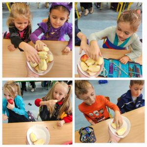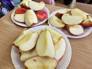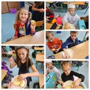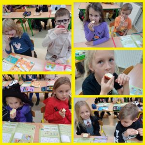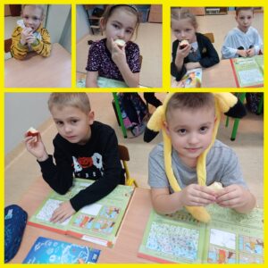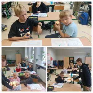Dnia 31 października, po raz kolejny obchodziliśmy w naszej szkole „Światowy Dzień Jabłka”. Była to akcja prozdrowotna, degustacja miała na celu zachęcić uczniów do spożywania jabłek, jako zdrowej przekąski. Przygotowania do tego dnia rozpoczęliśmy wcześniej – wyszukaliśmy informacji o korzyściach zdrowotnych jabłek i zaprezentowaliśmy je na gazetce tematycznej.