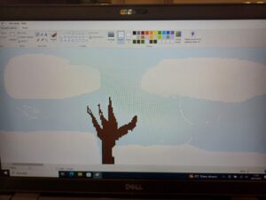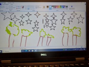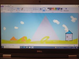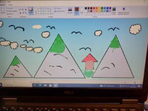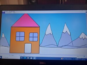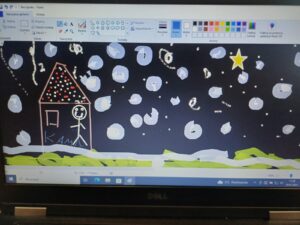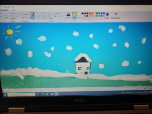 Podczas lekcji w klasie 1b rozwijane są kompetencje informatyczne, dzięki którym uczniowie nabywają umiejętności wykorzystywania technologiispoleczeństwa informacyjnego (TSI) w nauce, rozrywce i porozumiewaniu się. Doskonaląc umiejętności posługiwania się programem Paint dzieci wykonały pracę pod tytułem „Zimowy pejzaż”.