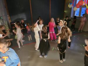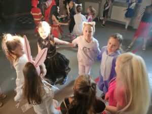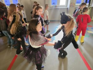 Nie zabrakło również słodkiego poczęstunku, który przygotowali rodzice. Na zakończenie balu wszystkie dzieci wspólnie zatańczyły „Kaczuchy” i „Macarenę”, a uśmiechy na ich twarzach świadczyły o doskonałej zabawie.