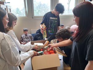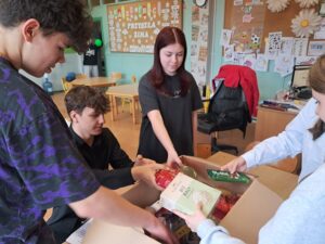 Nasza społeczność szkolna zaangażowała się w kolejny projekt charytatywny – akcję pomocy Polakom na Kresach Wschodnich „Jeden naród poza granicami”, którego celem jest zorganizowanie paczek składających się z produktów spożywczych o przedłużonym terminie przydatności. Paczki przygotowane przez każdą klasę przed Wielkanocą trafią do najbardziej potrzebujących za wschodnią granicą. Do każdej paczki uczniowie dołączyli własnoręcznie wykonane kartki z życzeniami.