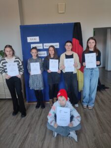 W dniu 19.03.2024 odbył się gminny etap konkursu recytatorskiego z języka niemieckiego „Jugend trägt deutsche Gedichte vor”. Uczniowie naszej szkoły zaprezentowali się wspaniale, a trzy uczennice zdobyły pierwsze miejsce i zakwalifikowały się do etapu powiatowego, który odbędzie się 15.04.2025 w Ozimku.