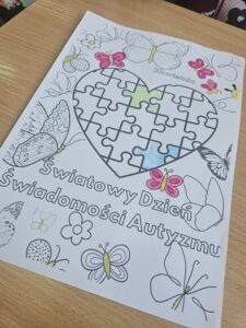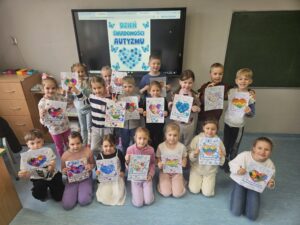 Obchody Światowego Dnia Świadomości Autyzmu to doskonała okazja do rozmowy o akceptacji, różnorodności i empatii. Dzień rozpoczęliśmy od krótkiej rozmowy na temat Światowego Dnia Autyzmu. Wytłumaczyliśmy, czym jest autyzm np. używając porównania do różnych kolorów lub wyjątkowych talentów, które ma każdy człowiek. Uczniowie mieli okazję zapoznać się z krótkim filmikiem „Jaś i niebieskie motyle”. Po seansie wspólnie omawiamy, co zapamiętały i jak możemy pomagać osobom w spektrum autyzmu. Dzień zakończyliśmy pamiątkowym zdjęciem.