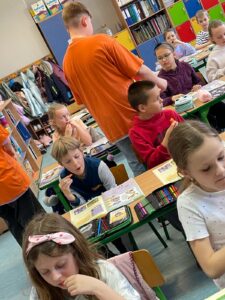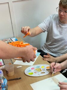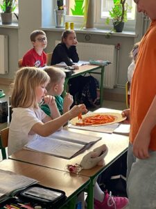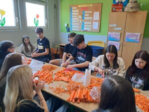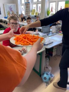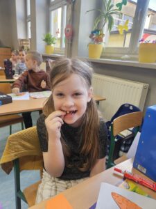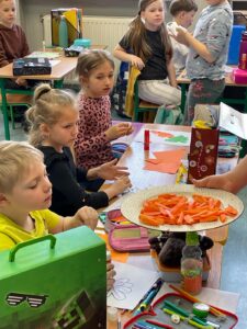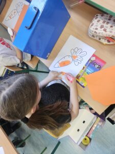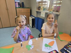 Zainaugurowaliśmy miesiąc zdrowia wyjątkowo smacznie – Dniem Marchewki! Uczniowie klasy 8a przygotowali zdrową degustację dla całej szkoły, a młodsze klasy I–III tworzyły na zajęciach plastycznych portrety Pani Marchewki. Było kolorowo, zdrowo i pysznie!