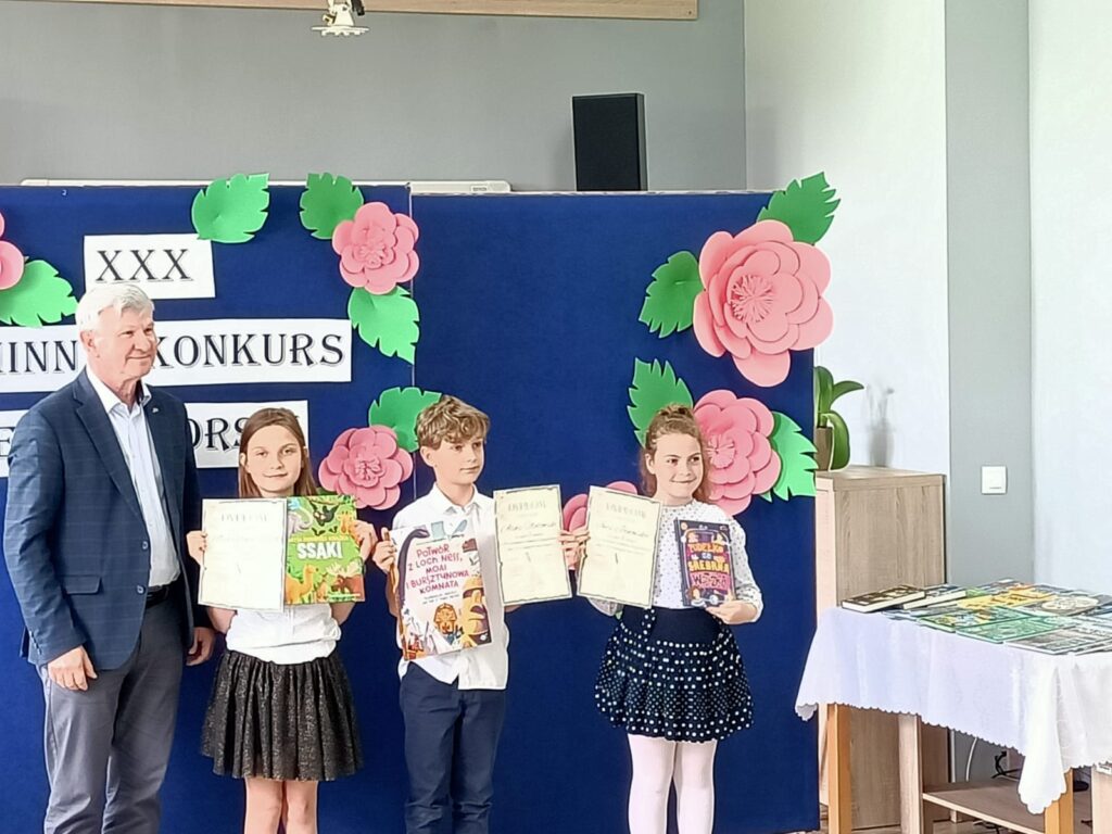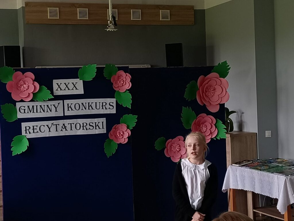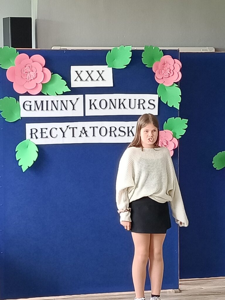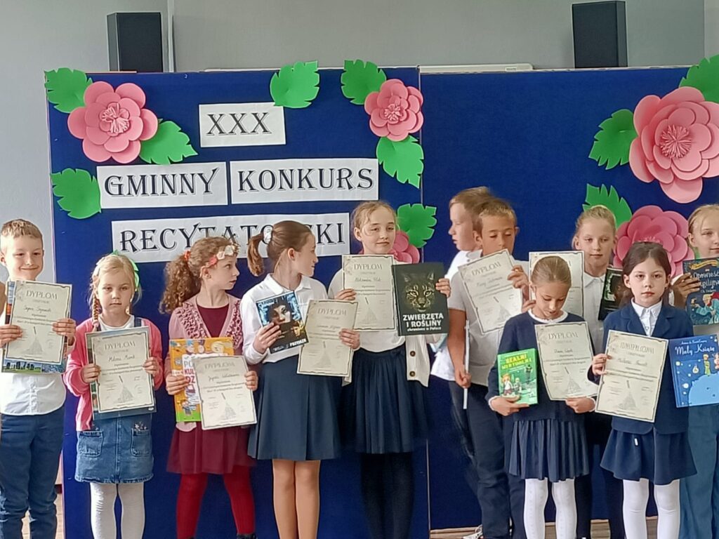 7 maja odbył się XXX Gminny Konkurs Recytatorski klas 1-4. Naszą szkołę reprezentowały uczennice: Milena, Maja, Nadia, Magda i Hania. Wszystkie dziewczyny pięknie recytowały przygotowane wiersze. Wyniki konkursu przedstawiają się następująco: