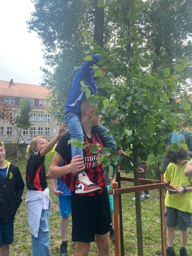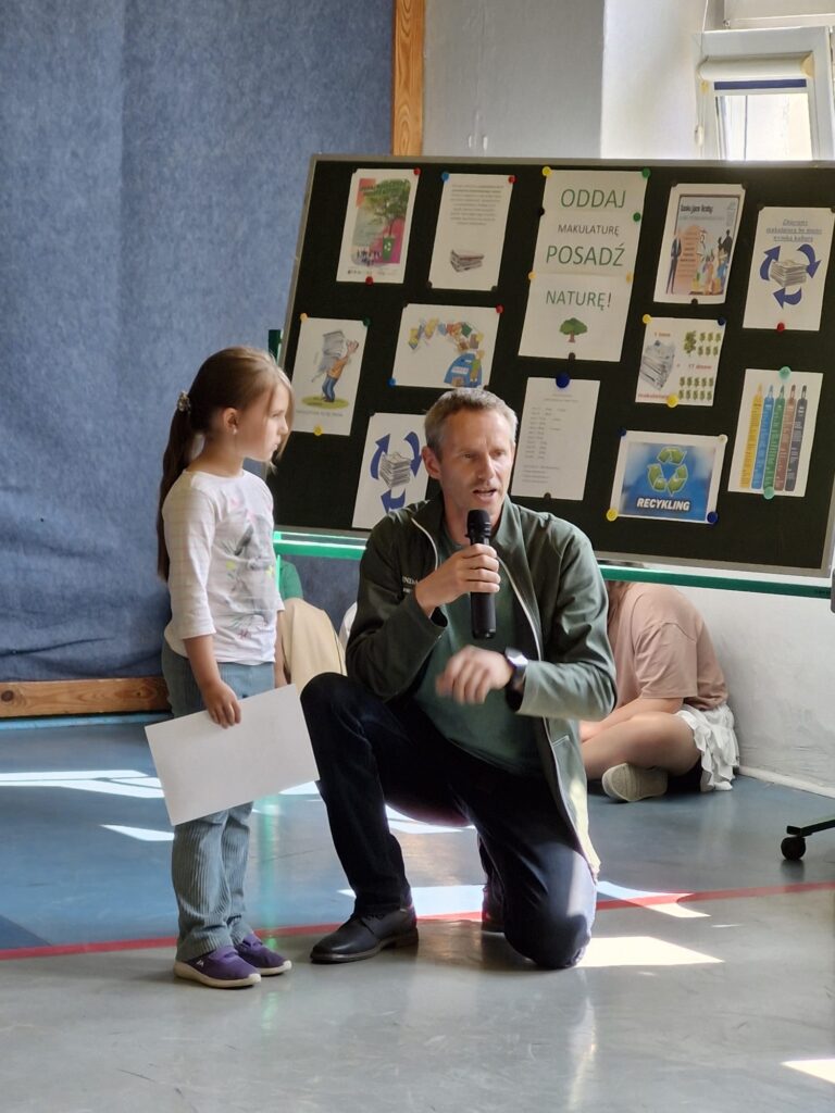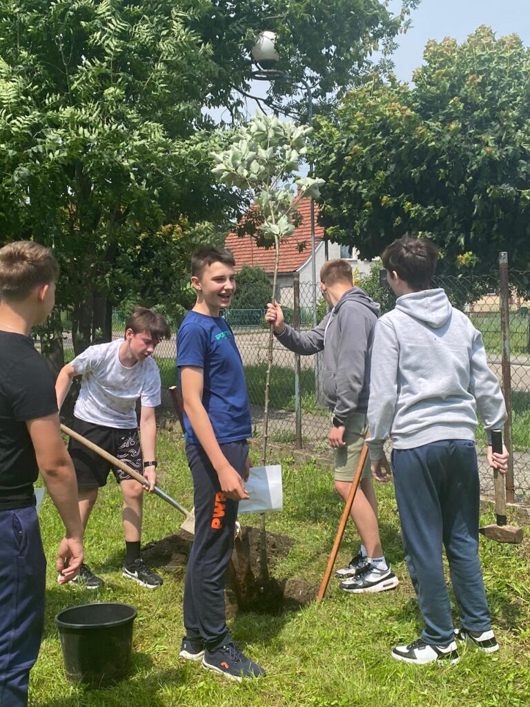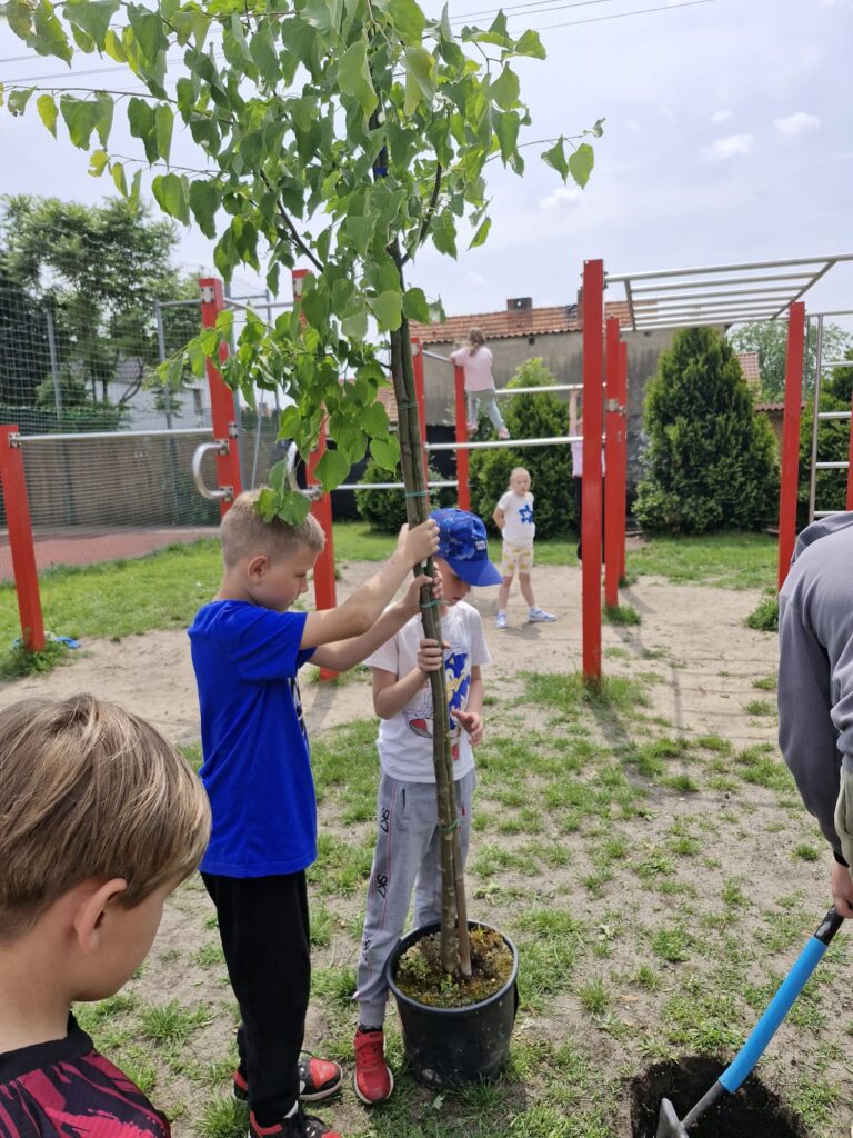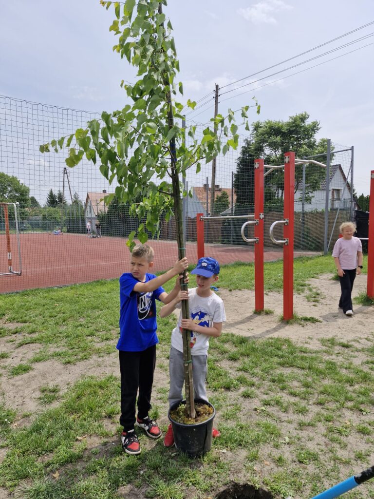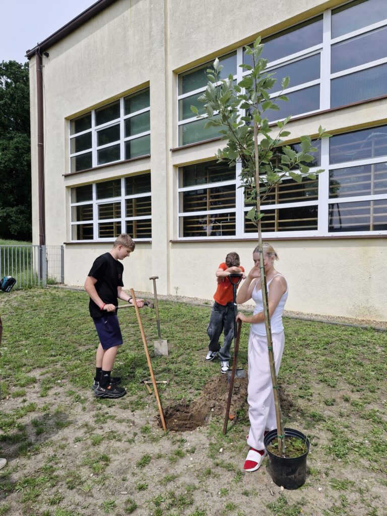 10 czerwca 2025 roku, w ramach projektu „Oddaj makulaturę, posadź naturę”, odbył się apel podsumowujący zbiórkę papieru w naszej szkole. Klasa 4 przygotowała piękny występ, a klasy, które przyniosły najwięcej makulatury, zostały nagrodzone.Na zakończenie spotkania odbyło się wspólne sadzenie drzewek z organizatorami projektu – panem Molfą oraz panem Zarankiewiczem.