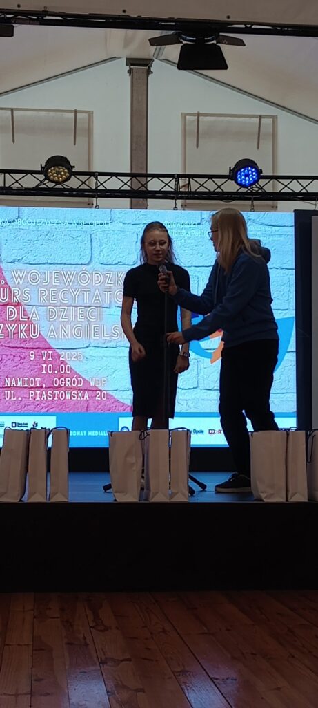 9 CZERWCA 2025 odbyl się 18 Wojewodzki Konkurs Recytatorski dla Dzieci w Języku Angielskim. Naszą szkołę w grupie najmłodszej reprezentowali: Paulinka, Amelia i Stanisław, w grupie starszej Zuzanna, Maja i Wiktoria, a w najstarszej Maria , Matylda i Magdalena. Wszyscy uczestnicy pięknie zaprezentowali swoje zdolności językowe, odwagę i zdolności sceniczne za co składamy SERDECZNE GRATULACJE!