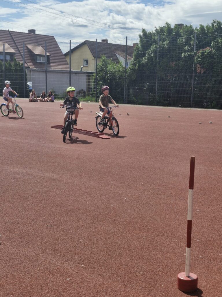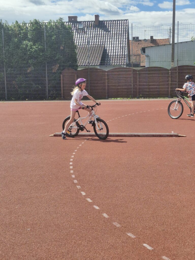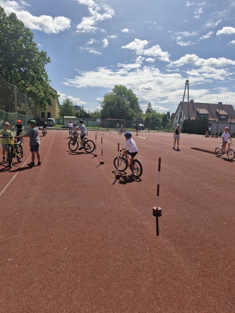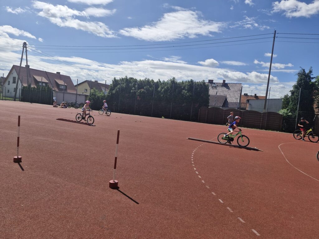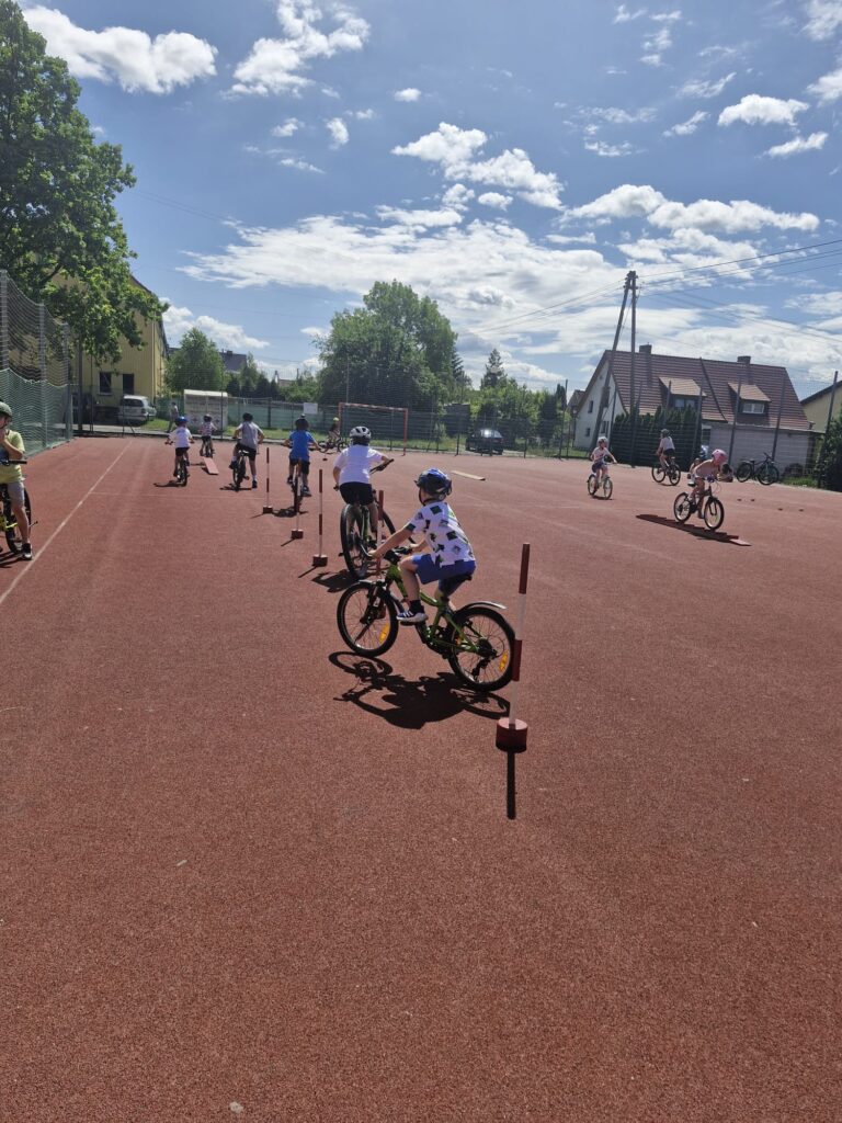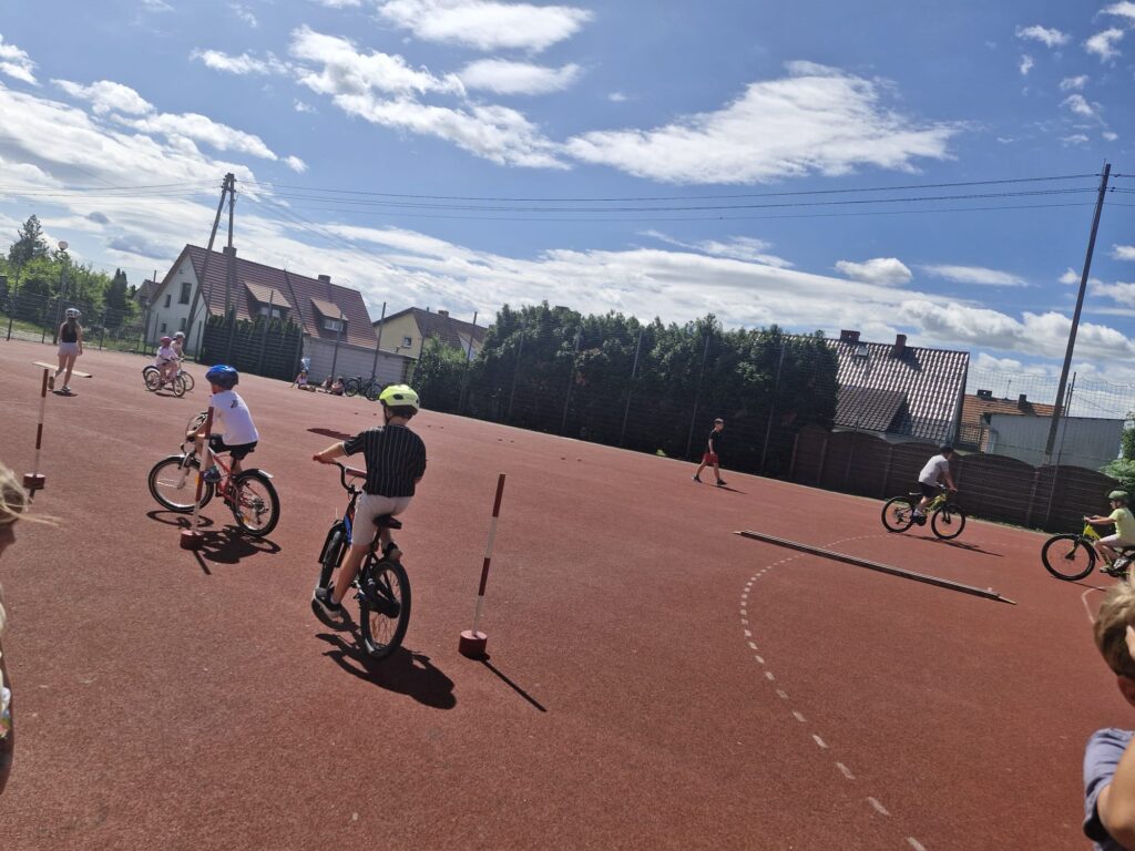 Na szkolnym boisku pojawił się specjalny tor przeszkód do jazdy rowerem. Uczniowie, którzy przynieśli kaski i sprawne rowery, mogli sprawdzić swoje umiejętności w praktyce i przypomnieć sobie zasady ruchu drogowego. Akcja cieszyła się dużym zainteresowaniem i przebiegła w świetnej atmosferze.