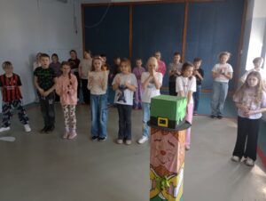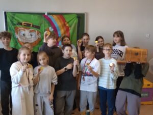 Uczniowie wzięli udział w różnych atrakcjach związanych z tym świętem. Były tańce, zagadki oraz dyktando rysowane, które sprawiły wszystkim wiele radości.Na zakończenie uczniowie klas 1–6 wzięli udział w zabawie polegającej na odnalezieniu złotych monet ukrytych w garnku na końcu tęczy. 🌈