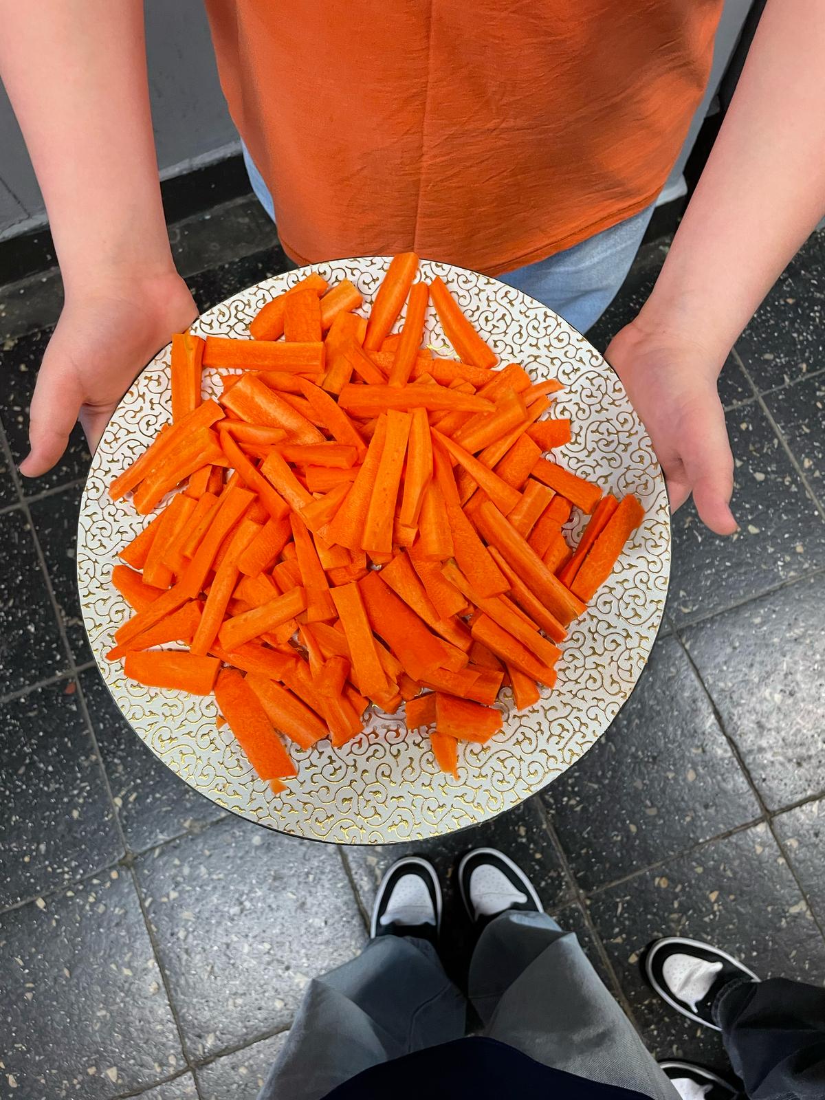 Zainaugurowaliśmy miesiąc zdrowia wyjątkowo smacznie – Dniem Marchewki! Uczniowie klasy 8a przygotowali zdrową degustację dla całej szkoły, a młodsze klasy I–III tworzyły na zajęciach plastycznych portrety Pani Marchewki. Było kolorowo, zdrowo i pysznie!